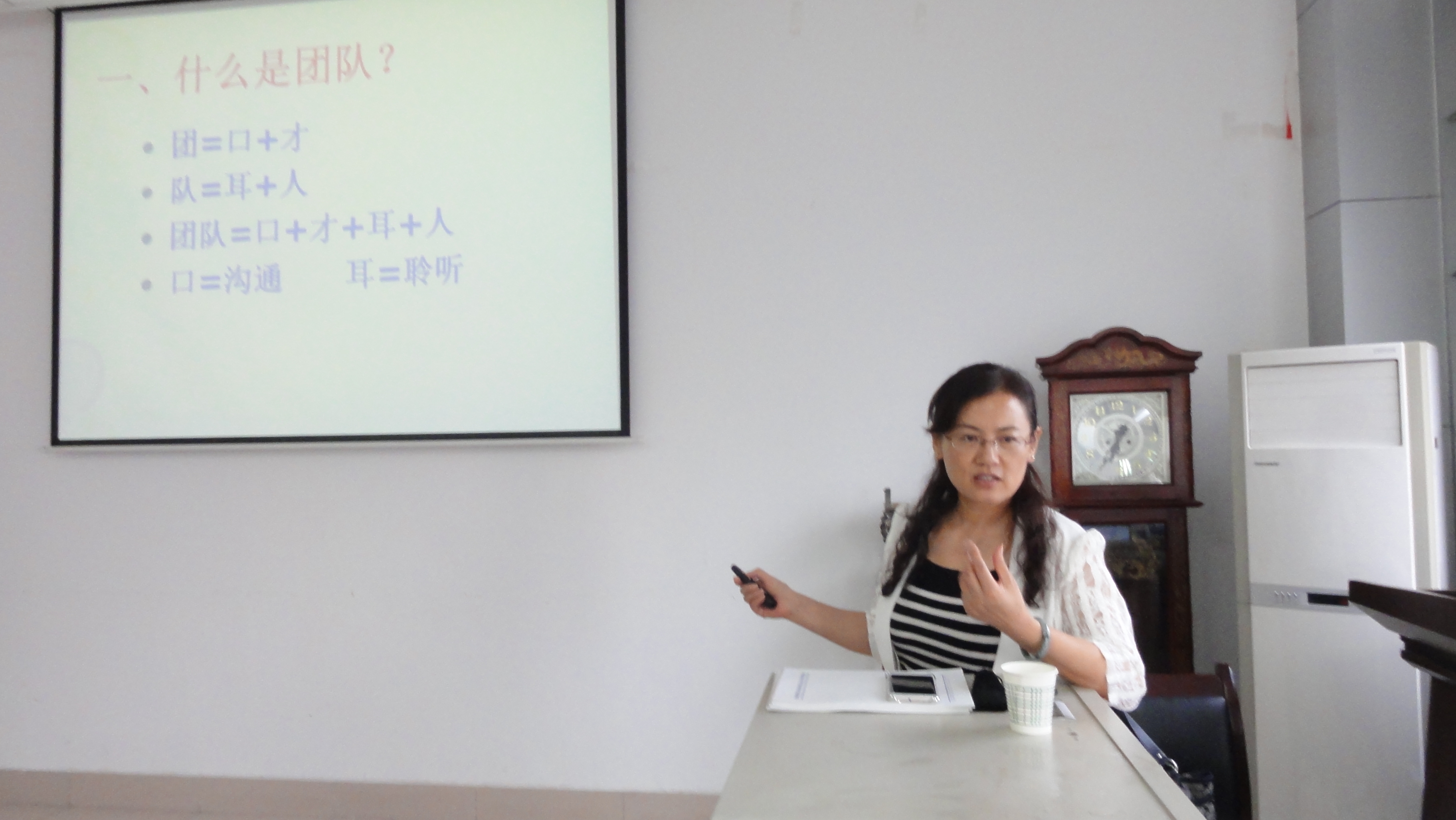 首先,汪月琴老师从团队概念、团队构成五要素和团队与群体的区别三方面进行了讲解,让学员对团队建设有了新的认识。进一步,对此次活动的意义进行了分析,即通过团建活动帮助学员更好的认识彼此,拓宽思维。随后,学员以小组为单位围绕“交流沟通、相认相识”主题,依次进行了三项活动。第一项“从认识你我开始”:各组成员在小组负责人的组织下,通过自我介绍、他人评价的方式,互相认识、达到融冰效果,加深小组内部认识。第二项“看看你属于哪种气质”:每位学员通过问卷测评,了解自我气质类型,从而加深自我认知。第三项“展示团队风采”:各小组发挥自身想象力和创造力为本组取得一个特色的队名和口号,并绘制队徽、编排队歌,充分凝聚小组的团队协作精神。最后,在各小组成果展示环节,现场爆发出阵阵掌声,本次活动也在热烈的欢呼声和掌声中缓缓落下帷幕。