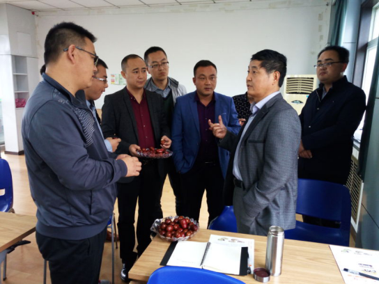 通过和全班同学们的互动交流,高文海教授就五佛乡今后枣产业发展提出了指导性的建议:一是目前五佛乡枣产业品种引进上存在问题,老枣和骏枣的种植没有特色,品牌效应不强。二是结合本地实际情况认真研究适宜本地种植的红枣品种,加快枣品种更新,更好的发展鲜食品种及制干品种。三是传统栽培技术落后,导致红枣产量不高、质量偏低,应加快引进新的种植技术,同时改善设施栽培类型。四是可依托大农圈、销售网保障红枣销售渠道,增加农民收入。