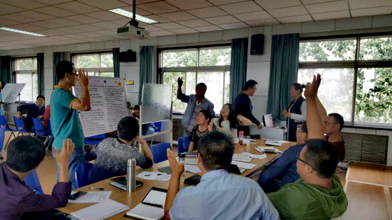 一是掌握研讨要素。在结构化研讨开始之前专门邀请西北农林科技大学继续教育学院刘彬让教授,就“如何学习和开展结构化研讨”给我们上了一堂专题课。帮助培训班学员了解和掌握结构化研讨的基本内涵、主要模式和操作流程。二是安排研讨分组。按照差异互补的原则,将全班学员分成4个小组。安排不同工作领域、不同单位性质、不同业务岗位的学员编入一组。这样有利于学员之间的知识互补和经历互补,从而激发反思与创新。三是布置研讨环境。将每个讨论小组的桌椅摆成一列,并配备白板、纸张、水彩笔等教具,便于各小组在研讨过程中进行要点记录,并对小组成员的观点及时进行整理和提炼,充分营造全班学员积极参与研讨的良好氛围。